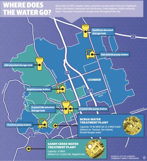 The city’s water supply and treatment capacity is sufficient for existing water customers, according to the city. But to handle growth, Leander is looking to transfer additional water treatment to the BCRUA plant for more efficient distribution.