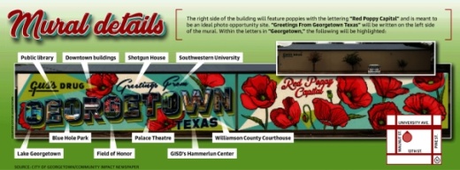 “While the physical final product, the mural, will be beautiful, a huge part of the value in the mural is the community involvement, conversations and memories,” she said. “A friend shared that she grew up behind Gus’s and used to go in the back door through the pharmacy to buy candy as a kid ... today she still lives in Georgetown and can’t wait to bring her family to paint the mural with her in her old neighborhood.”