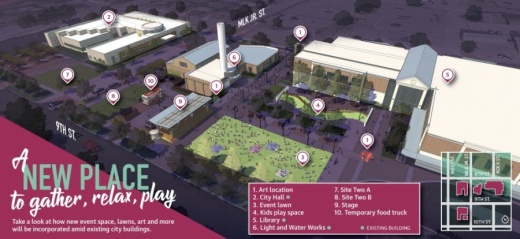 “The area around City Hall, the library, and the historic Light and Waterworks building would give the city another great venue,” she said. “This would shift some events from the Square and give visitors other areas in downtown to visit and other businesses to support. I think this can be a space for more art to be displayed—statues, murals, even temporary artwork displays—as well as a venue for smaller festivals and events.”