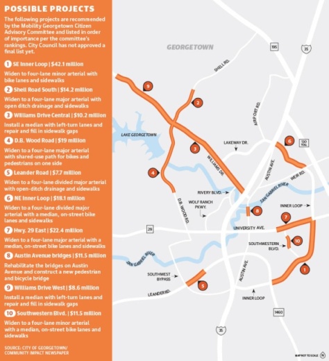 “The need for transportation projects in Georgetown far exceeds the targeted $50 million,” the advisory committee stated in a presentation. “We are concerned that a single project—SE Inner Loop—plus allocations will consume all the targeted amount, potentially to the exclusion of other important projects.”
