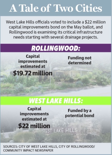 The neighboring city of Rollingwood faces similar challenges related to its aging infrastructure, according to a report by engineering firm K. Friese & Associates, which highlighted the city’s major flooding and drainage concerns.