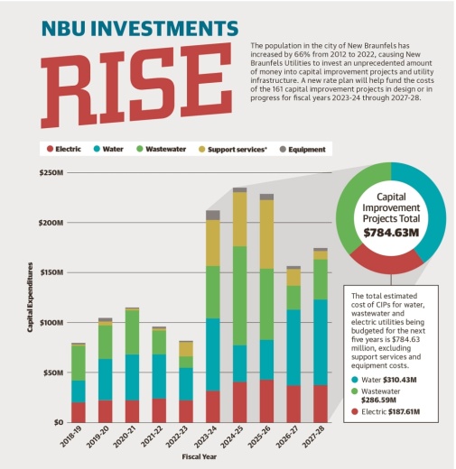 Mayor Rusty Brockman said things have not been easy for the utility company since Winter Storm Uri occurred in February 2021, but community input and the formation of the committee has led to improvements for NBU. Brockman said the future capital improvement projects, which take up 73% of the $1.41 billion five-year operating budget, are imperative to the city.