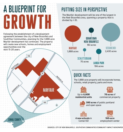 Mayfair is located in the extraterritorial jurisdiction, or ETJ, of New Braunfels on property that was previously owned by the Texas General Land Office, Rutherford said.