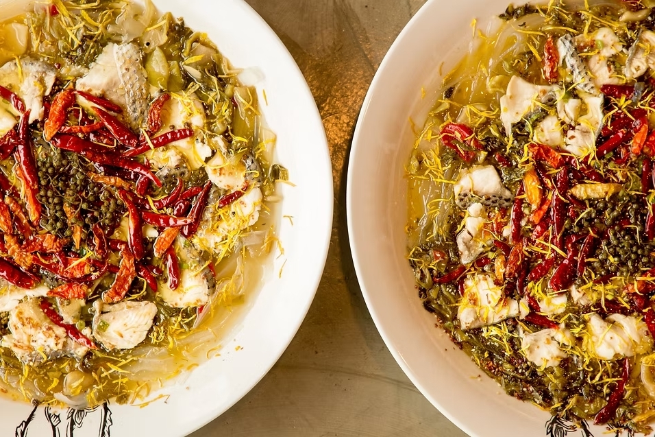 Known as a “Chinese sauerkraut fish” concept, the menu centers on its signature dish: tender fish fillets in a tangy broth of pickled mustard greens—called Chinese pickles—chilies and Sichuan peppercorns. Its bold sour-and-spicy flavor profile has made it a rising star on Chinese restaurant menus. Additional broth options are also available.