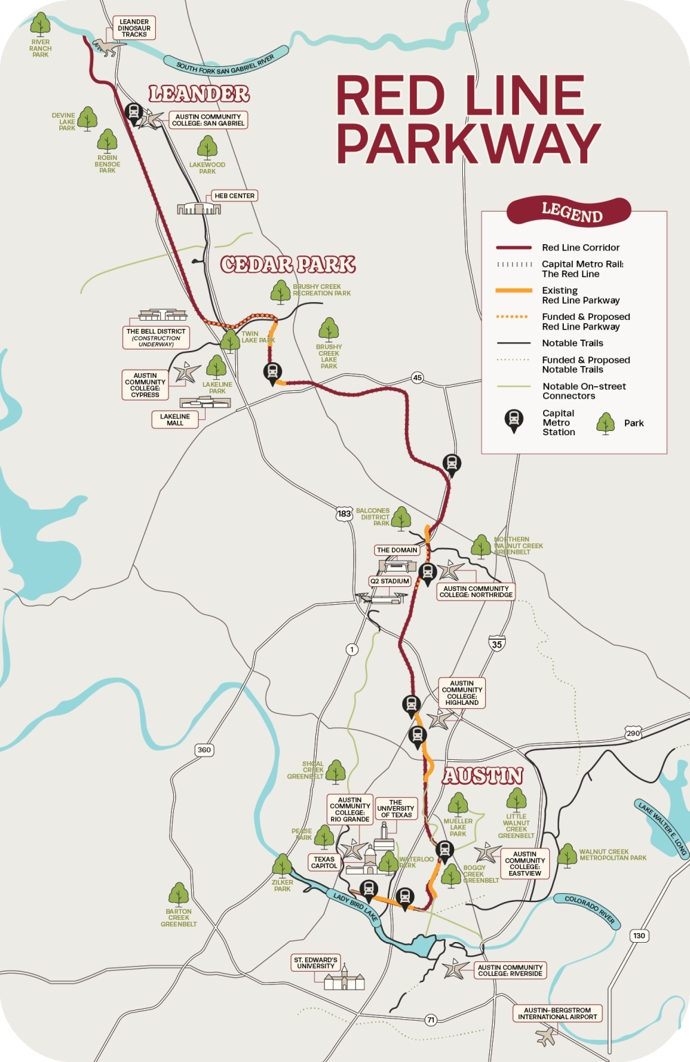 The Red Line Parkway, conceived over two decades ago, is poised to become the largest trail system north of Lady Bird Lake, connecting major Austin trailways in a unique way.