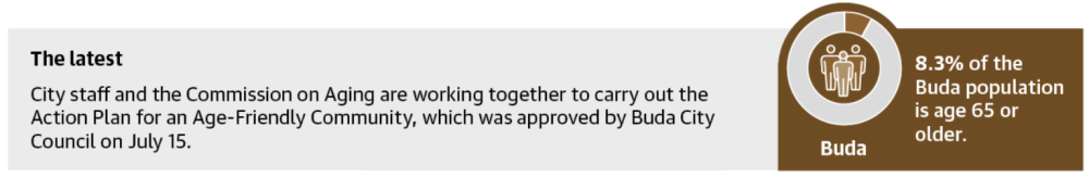 While San Marcos works through its first cycle of home repair funding, Buda is putting into action its first long-term framework for older adults, the plan for which was adopted by City Council on July 15.
