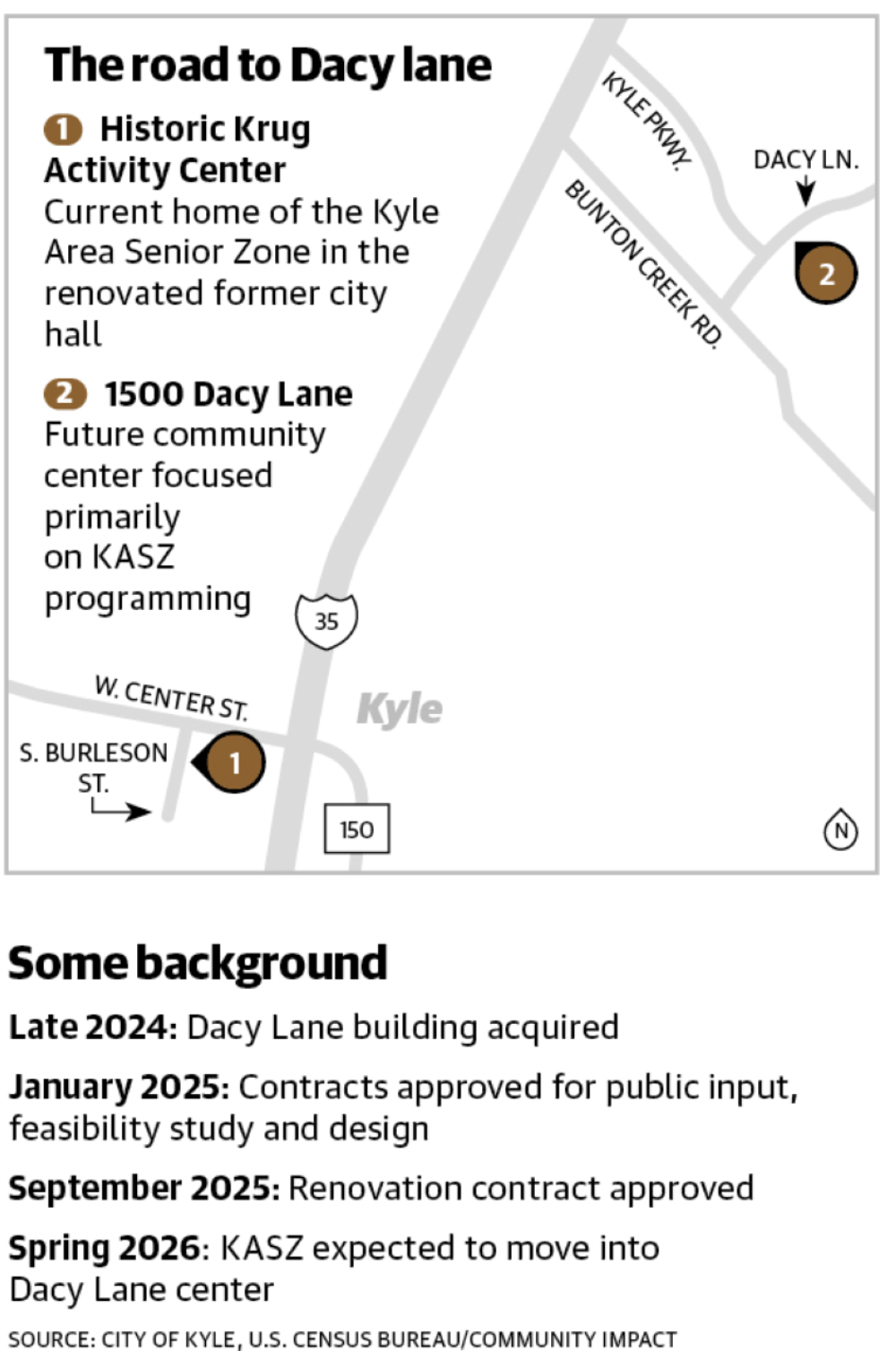 KASZ, which runs free programming for adults age 50 and older at the historic Kyle City Hall—now the Krug Activity Center at 101 S. Burleson St.—will share the space with other community groups; however, KASZ will have priority during daytime hours, officials said.