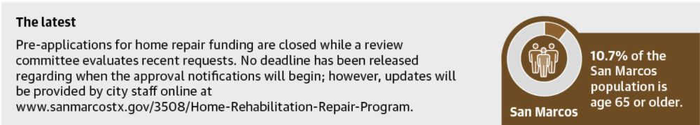The cities of San Marcos, Buda and Kyle are also rolling out senior-focused efforts, ranging from home repair help to new plans and hubs.