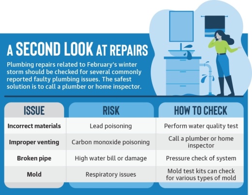 To prevent frozen pipes, Ybarra suggested homeowners let hot and cold water lines drip during blackouts, as both pipes are liable to freeze. Outdoor faucet warmers and covers can prevent freezes originating outdoors, which was a common cause for burst pipes, he said.