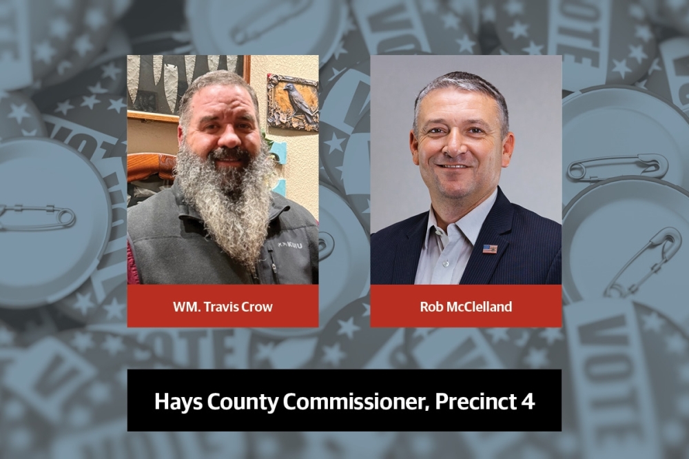 The winner of the Democratic primary will face the winner of the Republican primary in the general election, and the winner will serve as Hays County commissioner for Precinct 4.