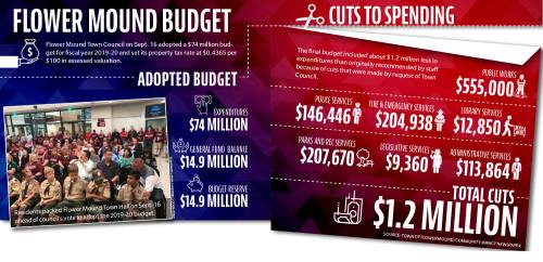 After a contentious budget season, Flower Mound Town Council unanimously adopted a $74 million budget for fiscal year 2019-20 and set its property tax rate at $0.4365 per $100 in assessed valuation—the town’s lowest rate in 30 years.