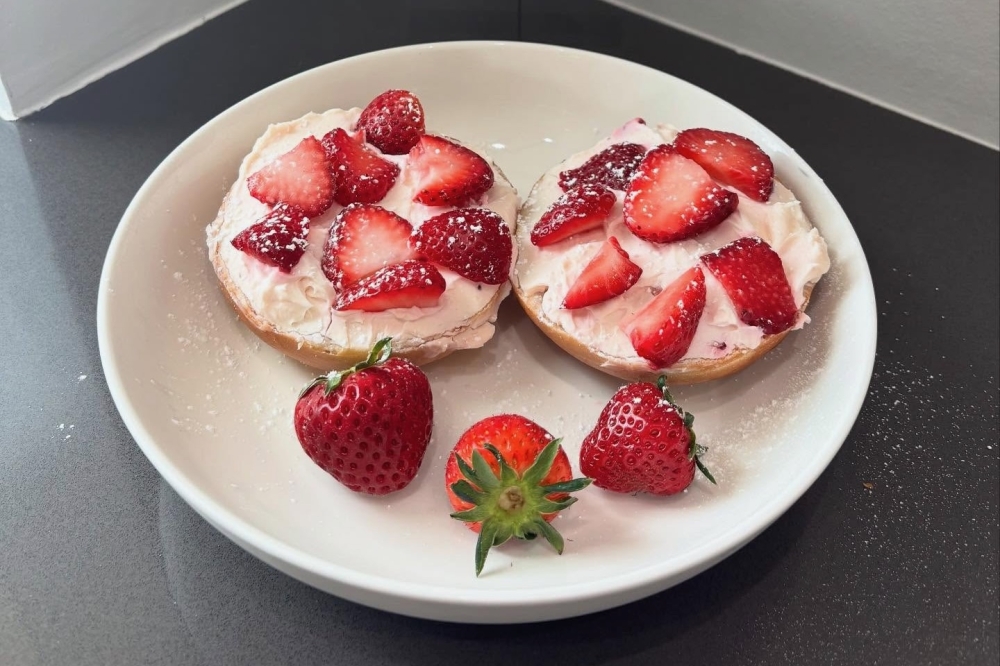 The restaurant serves different flavored bagels such as garlic, rosemary salt, jalapeno cheddar and sesame seed. They also serve sandwiches like the strawberry delight and the sundried tomato.
