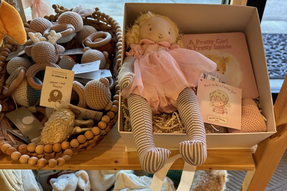 Curated boxes and baskets are prepared for specific occasions or people. For example, a new mother basket could be filled with organic cotton baby items, rattles, onesies or light smelling lotion, she said.