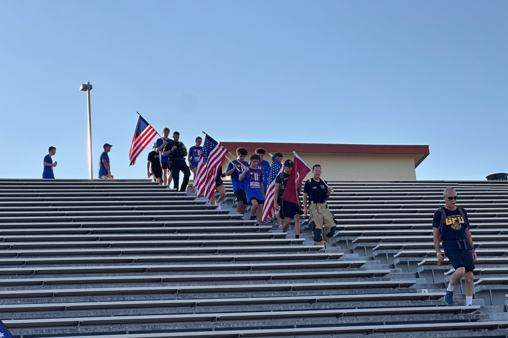 The wrestling team ran with veterans and first responders from Grapevine and Colleyville at Mustang-Panther Stadium, according to a news release from Grapevine-Colleyville ISD. They climbed 1,980 steps to simulate the 110 flights of stairs that first responders climbed inside the twin towers, according to the release.