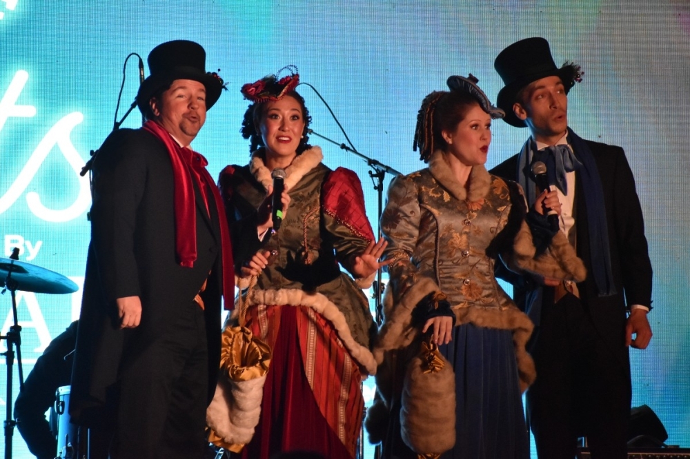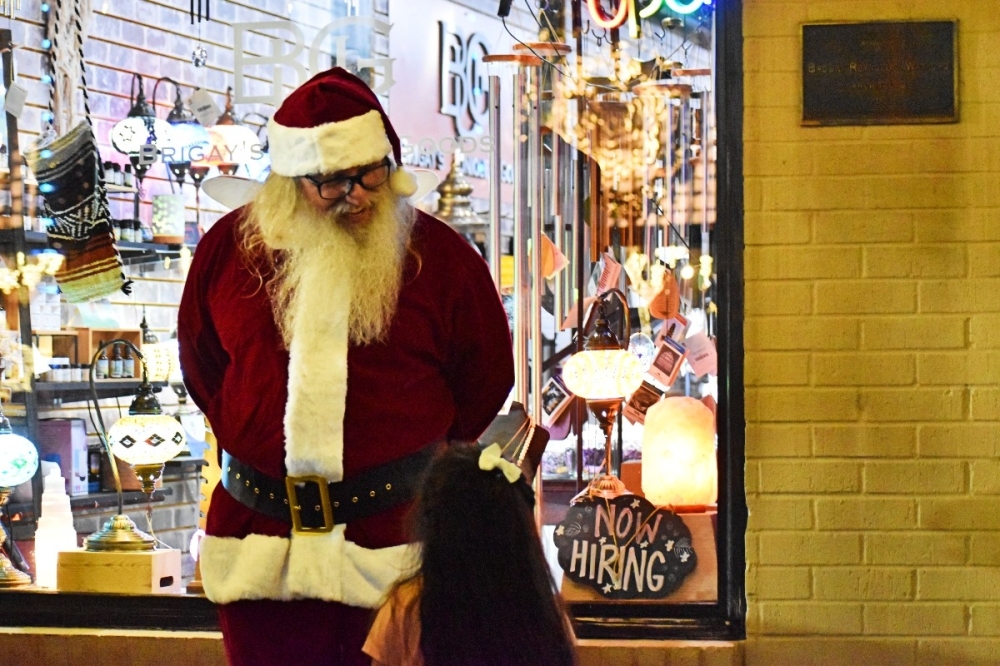 A 60-foot Christmas tree was lit at 7:30 p.m., while Santa made appearances at three different locations during the four-hour event.