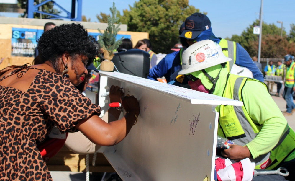 At the conclusion of the ceremony, which included the signing of a construction beam, Bandy Baker, general superintendent of JE Dunn Construction, voiced appreciation to the medical staff for their patience during the construction process and to the construction crew.