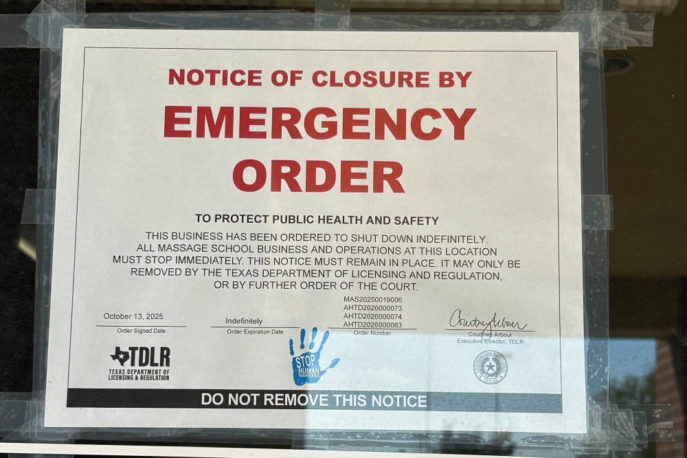 “During the investigation, TDLR found that one of the visitors to the school is an individual who has been subject to multiple TDLR emergency license suspension orders for suspected human trafficking in establishments in Garland and Fort Worth,” the release states.