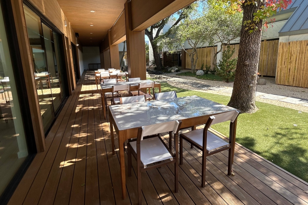 Tee Time Bar offers a full-service bar and restaurant. The dining area features large windows overlooking a zen garden. Patio seating is also available.