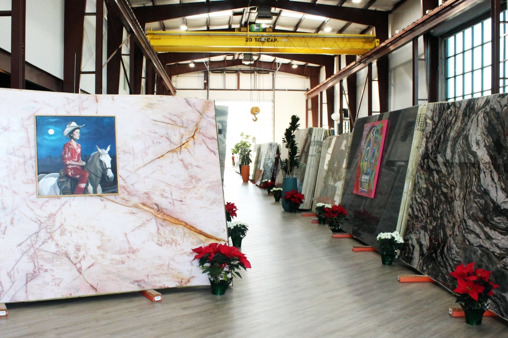 Interspersed throughout the showrooms are unique pieces of art many of which have stone components. Blackburn said the artwork helps customers and designers conceptualize what the stone will look like in a home.