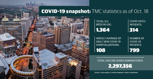Only 4.6% of the 3,137 patients tested between Oct. 11-17 at Texas Medical Center hospitals came up positive for the coronavirus, according to Texas Medical Center data. The positivity rate has declined from 5.4% a week ago, 7% two weeks ago and 15% eight weeks ago.