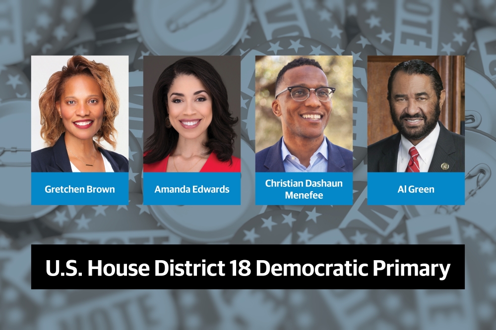 Gretchen Brown, Amanda Edwards, Al Green and Christian Dashaun Menefee will compete for the Democratic nomination. The winning Democratic candidate will face the winner of the Republican nomination in November; the winner of that election will begin serving District 18 in January 2027. Elizabeth Vences and Ronald Dwayne Whitfield are vying for the Republican nomination.