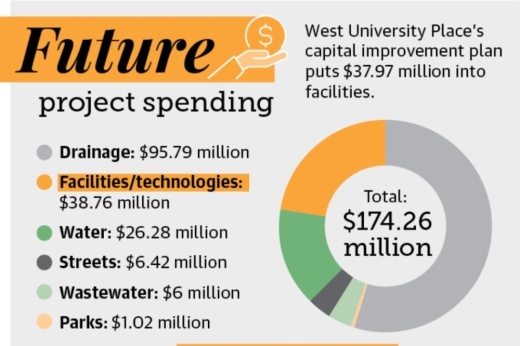 Since December, West University has held a series of public meetings to discuss its five-year facilities master plan, which involves adding, renovating, expanding and relocating key city buildings. The facilities plan is part of the city’s broader $174.26 million capital improvement plan outlining various projects, including street and road paving, and water line replacements.