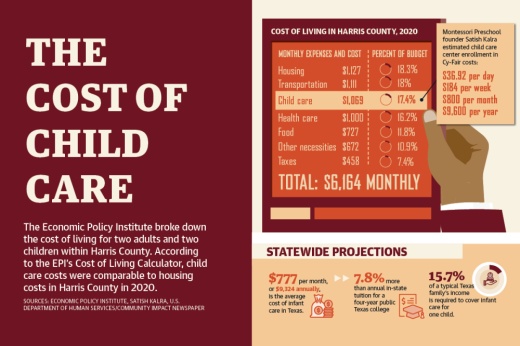 Comparatively, Brightwheel, a child care management software company, reported June 8 the average price of child care in the Houston region as $1,087 monthly. The group reported an 8% average increase in prices for child care between 2021 and 2022. However, Brightwheel reported Cy-Fair ZIP code 77064 as one of the most affordable in the metropolitan area with an average monthly cost of $495.