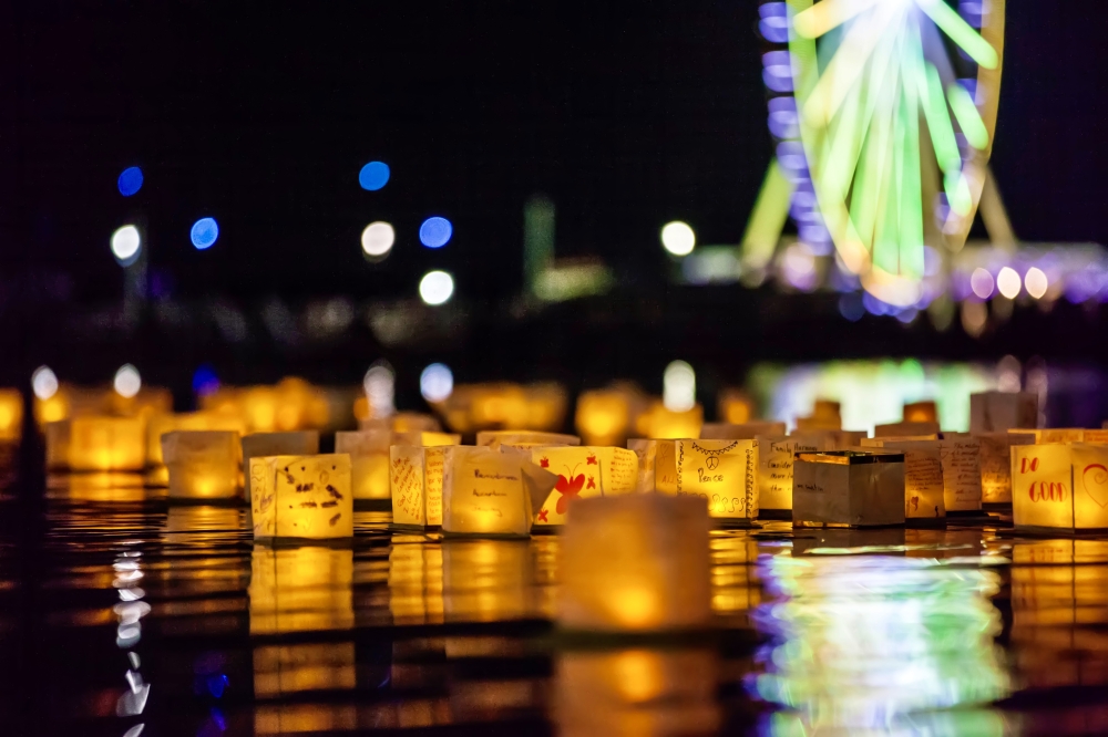 Watch thousands of lanterns drift across the water at the City Place Plaza.