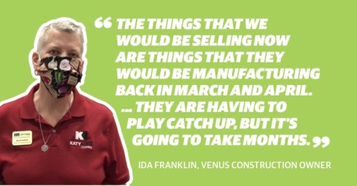 Ida Franklin, the owner of Venus Construction in Katy, said she lost two employees in the initial stages of the pandemic and started having supply chain issues.