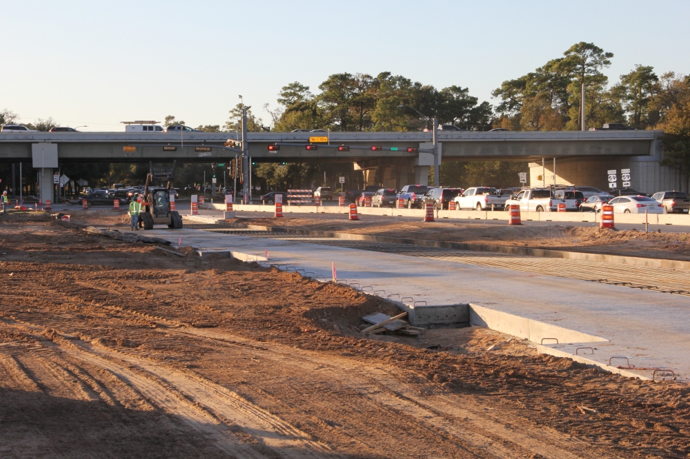 Contractor Harper Brothers Construction implemented a traffic shift between Hwy. 59 and Loop 494 so that eastbound traffic will be redirected onto the newly constructed westbound lanes, while westbound traffic will continue to use the existing westbound pavement.