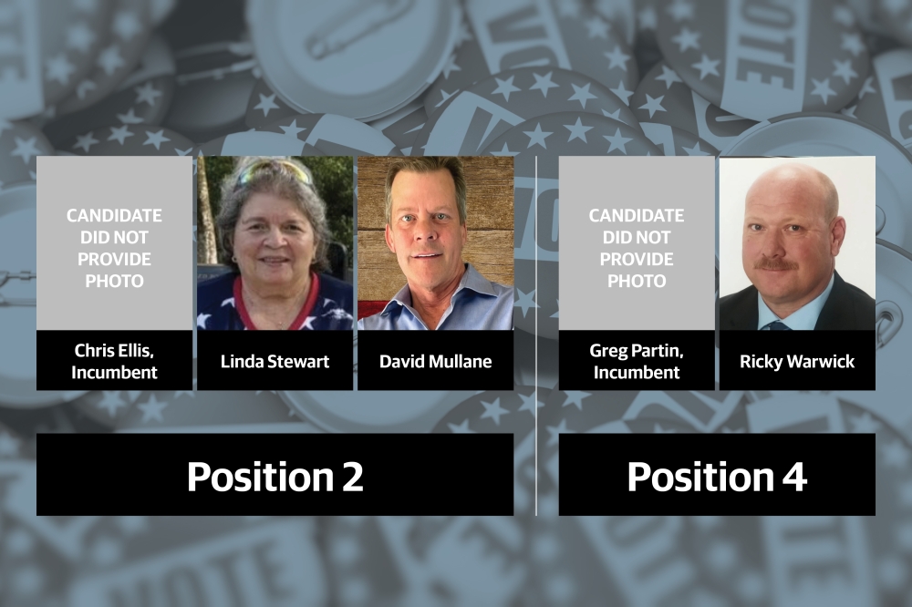 In the race for Position 2, Mullane has held onto his lead with 172 votes, while Linda Stewart and incumbent Chris Ellis have taken in 163 and 57 votes, respectively, early voting results show.For Position 4, Warwick is leading incumbent Greg Partin by a margin of 191 to 161 votes, respectively, according to early voting tallies.Stay tuned