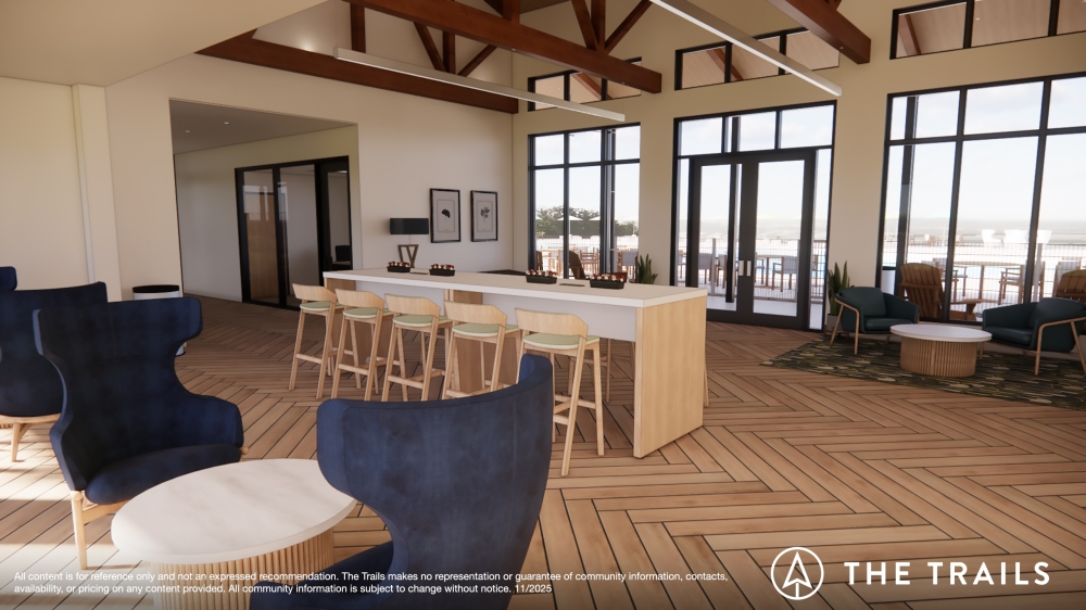 - The Landing, an indoor venue with seating areas, a kitchenette, restrooms, a dedicated space for the community's homeowners association offices and a spacious patio with seating and scenic views