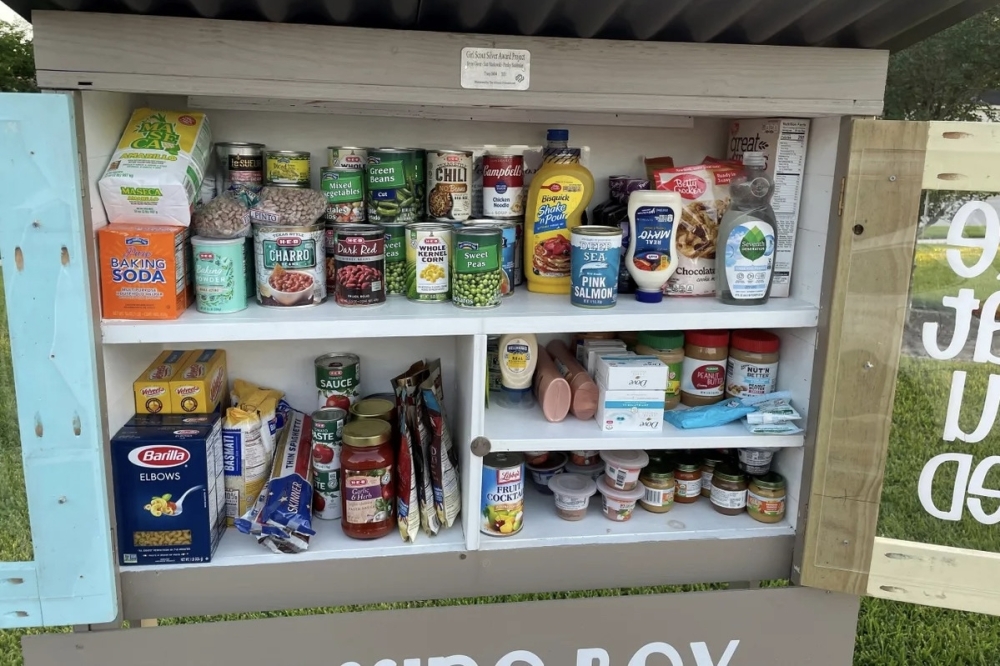 The 24/7 community resource is designed to help anyone in need, and is stocked with nonperishable food and essential hygiene items, according to the district's website.