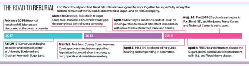 Officials with FBISD, Fort Bend County and the city of Sugar Land are working together to support legislation that would allow the county to own, operate and maintain a cemetery on site where the remains were discovered.
