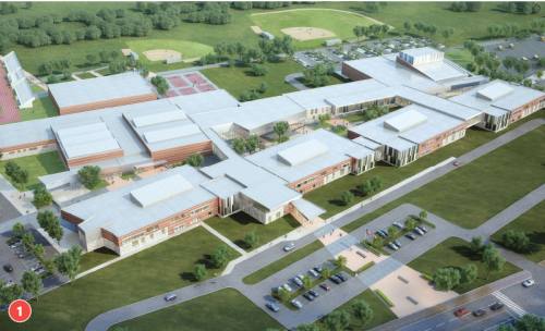 The design plan for Fort Bend ISD’s newest high school, to be located at the intersection of Glendale Lakes Drive and FM 521 in Rosharon, features innovative types of learning environments, including open collaboration spaces and learning communities. The two-story site plan includes academic areas for each grade level, athletic and fine arts areas, career and technical education, multipurpose rooms, administration offices and a secure outdoor learning area.