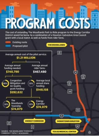 Norrell said the township can pull out of the program with 30 days notice if ridership is not what was expected.“A large portion of our households commute to two locations ... downtown Houston and the Energy Corridor. This is almost an economic development tool for us in that it gives them available transportation,” Norrell said.