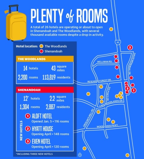 “We are already seeing Woodlands hotels dropping rates and going after lower revenue business they would not have considered a year ago,” Mayner wrote in the report.