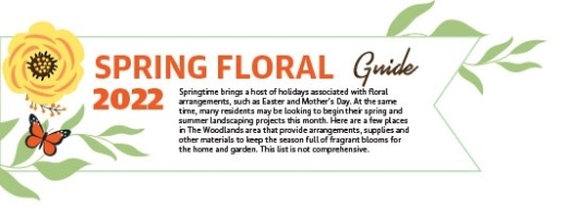 Springtime brings a host of holidays associated with floral arrangements, such as Easter and Mother’s Day. At the same time, many residents may be looking to begin their spring and summer landscaping projects this month. Here are a few places in The Woodlands area that provide arrangements, supplies and other materials to keep the season full of fragrant blooms for the home and garden. This list is not comprehensive.