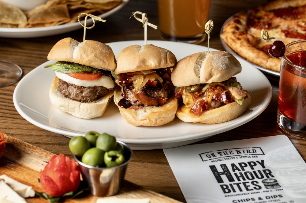 With organic meats sourced from New Zealand and bar appetizers fried in beef tallow—as well as soy for vegan options—On the Kirb offers a variety of bar food staples such as truffle fries, organic wings and burgers.