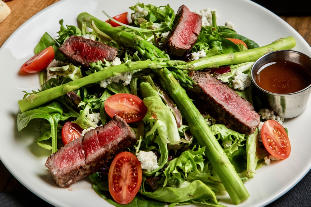 A popular menu item is organic kabobs made with grass-fed beef or organic chicken and served on a bed of house-made hummus with steamed broccoli and a Greek salad, he said.