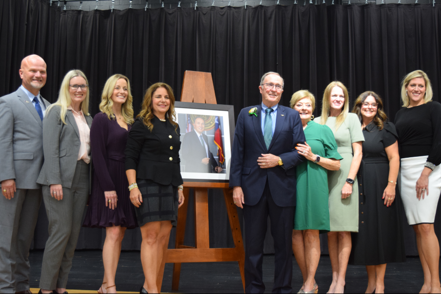 The ceremony included speeches from board of trustees President Misty Odenweller, who discussed district growth, and Superintendent David Vinson, who thanked those who helped build the campus.