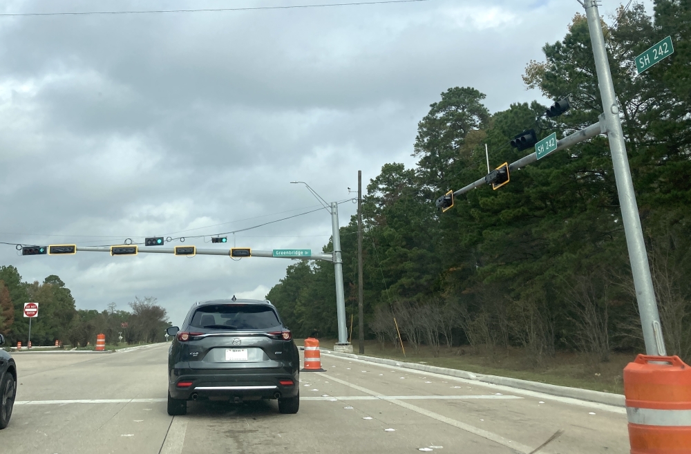 Project: TxDOT is using the existing right of way on Hwy. 242 between FM 1488 and I-45 to widen lanes and restripe the intersections.