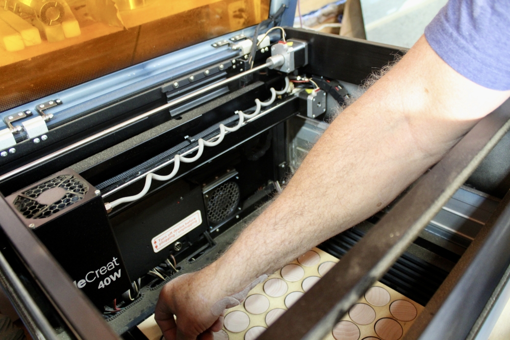 Utilizing a Computer Numerical Control machine, the Jamisons create tokens carved with biblical phrases. (Jovanna Aguilar/Community Impact)Some of the Jamisons' creations include clipboards. (Jovanna Aguilar/Community Impact)