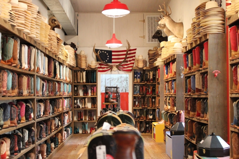 Gruene Boot Company sells Azulado and Ariat boots—which are made from rawhide leather—and a selection of Horse Power boots—made from ostrich and caiman skin.