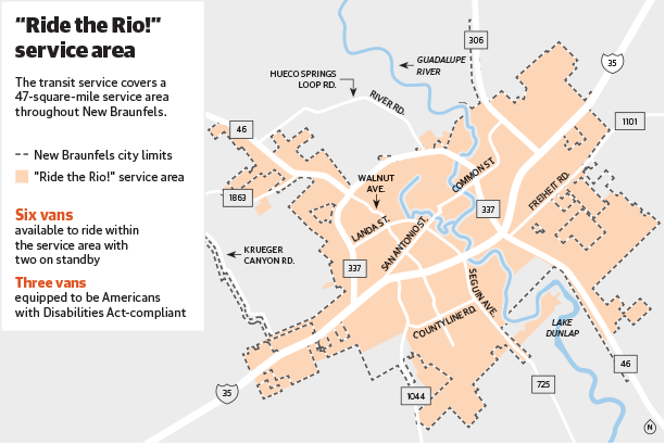 The regional transit system can enter and exit the service area to pick up or drop off riders, but it cannot complete trips entirely within the zone, New Braunfels Transit Manager Julie Sitton said.