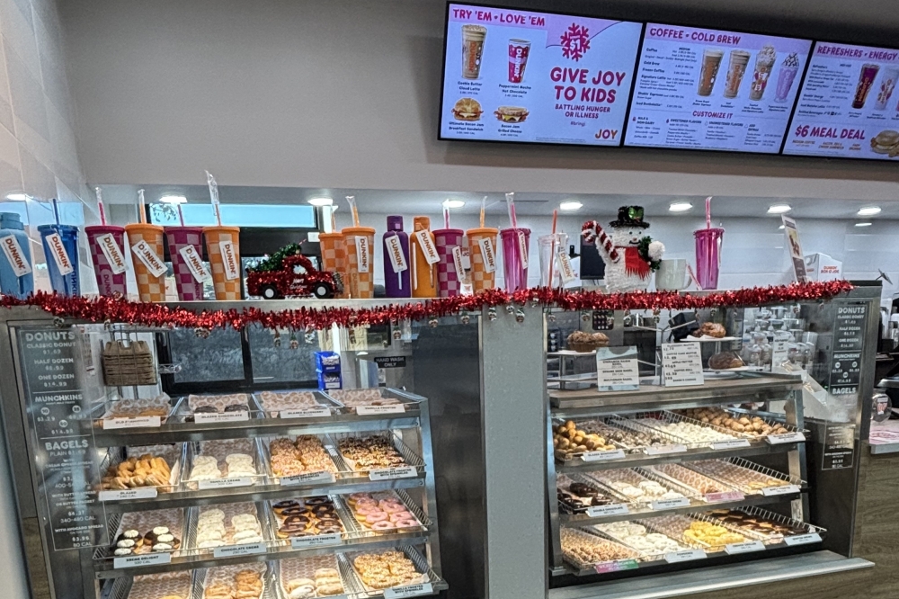 The Dunkin’ Donuts is owned by Kishore Samtani and offers a wide selection of coffee, baked goods, donuts and breakfast sandwiches that are served all day.