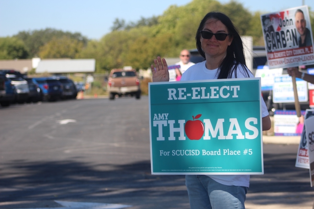 Incumbent Amy Thomas leads early vote totals for Schertz-Cibolo-Universal City ISD board of trustees Place 5, according to totals from Guadalupe and Bexar counties.