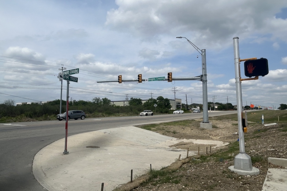 A new traffic signal at the intersection of FM 1103 and Knights Crossing was activated April 1. The installation, according to the Texas Department of Transportation, was in response to increasing traffic volume and a need to enhance road safety at the location. The project is part of the Steele Creek Subdivision Public Improvement Agreement approved in July 2022, according to agenda documents from the April 8 Cibolo City Council meeting.