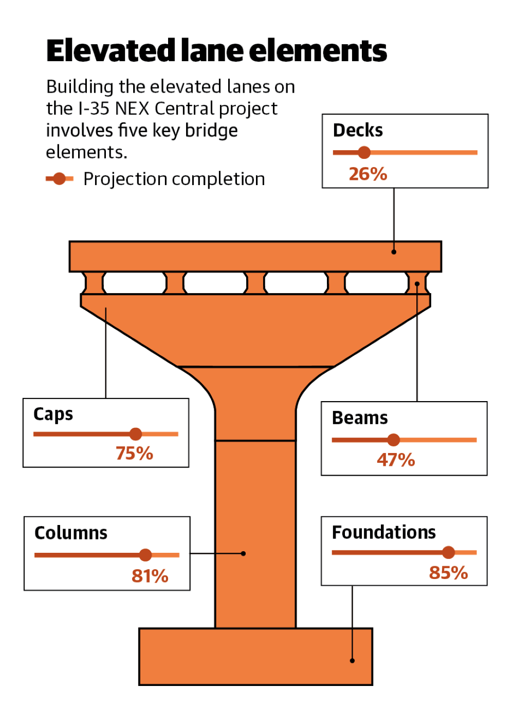 The crux of the project lies in building the elevated lanes, broken down into five elements.