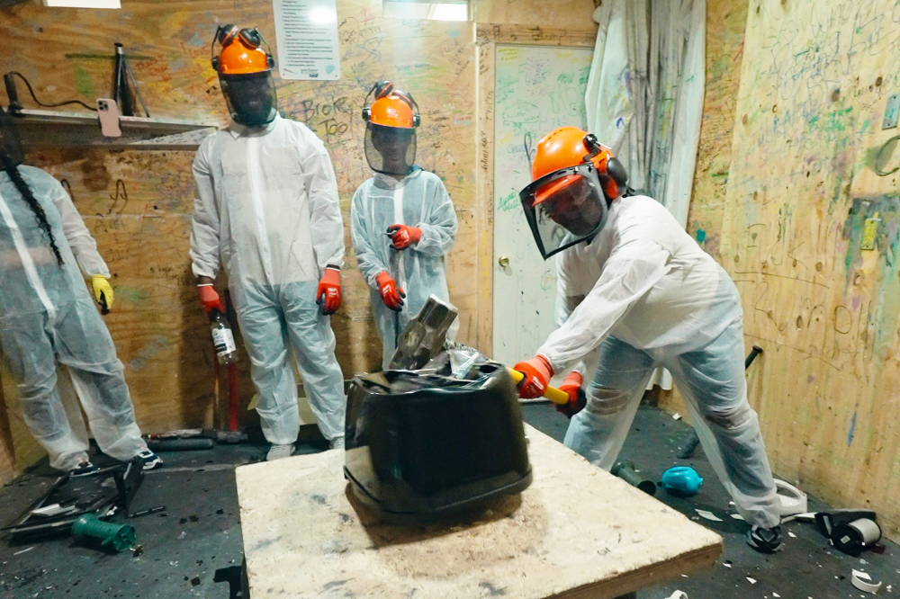 For the rage room, this includes helmets with face shields, goggles, gloves and closed-toe shoes, ensuring safety while smashing items like glass and electronics. Participants in the paint room receive ponchos, gloves, face covers and shoe protection to stay comfortable while embracing the mess.